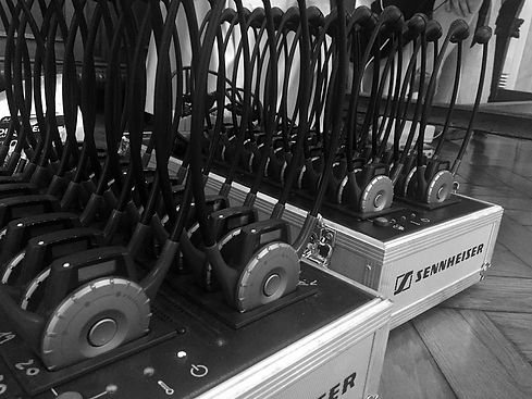 In a sound-insulated booth with a direct view of the speaker, I deliver the interpretation at the same time the speech is being given. Participants hear the interpretation instantly through their headsets, allowing the event to run smoothly without pauses.